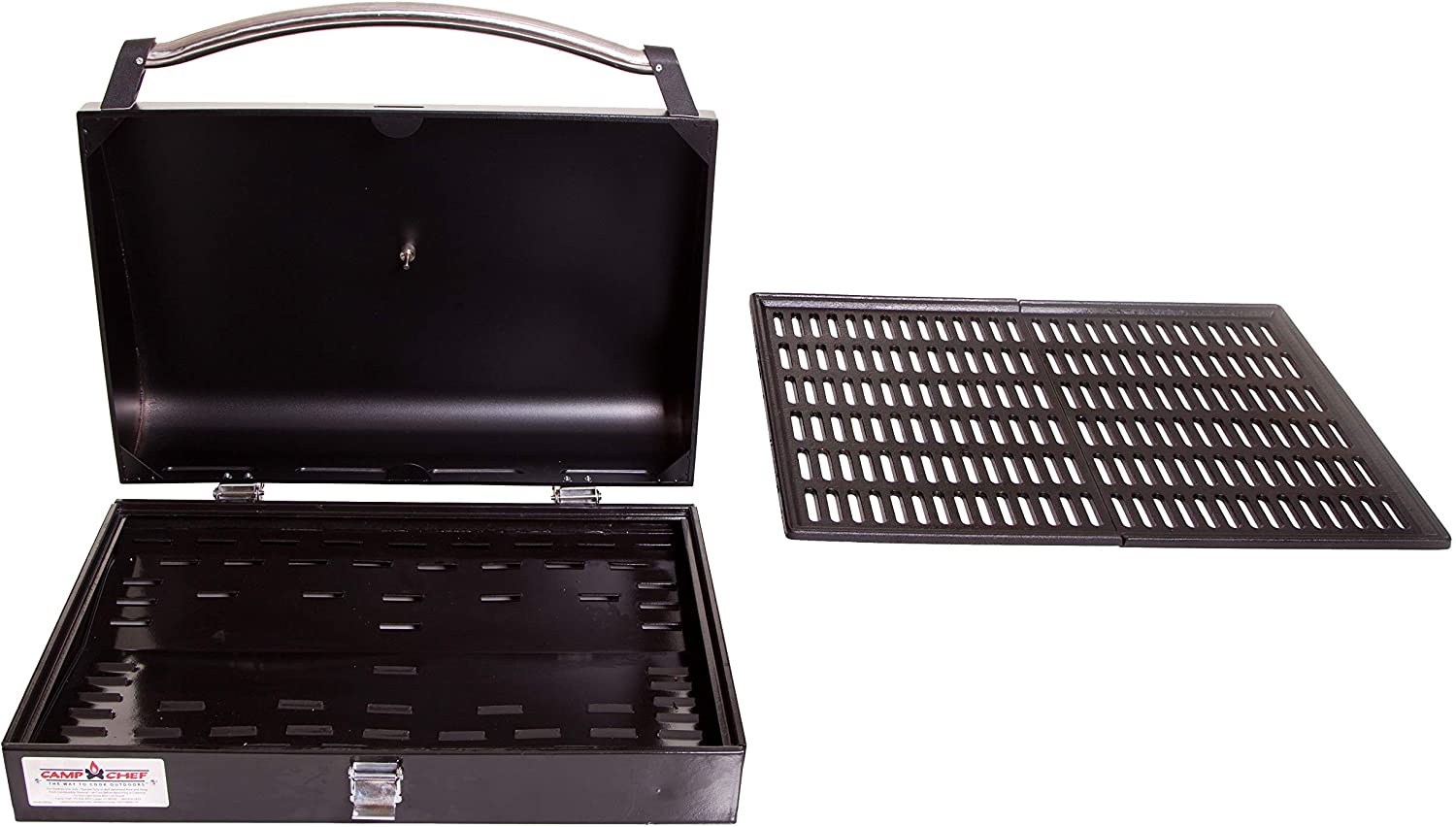 Convert your stove into a powerful barbecue grill. This barbecue grill box is sure to win you over to Camp Chef’s savory outdoor flavor. Features a reverse-louvered plate to vaporize grease drippings while distributing heat evenly over the cooking surface to create a more flavorful cooking experience. Cast iron grates offers restaurant-quality grilling. This grill accessory fits over two burners on Camp Chef 16" Cooking System stoves. Measures 16 x 24 inches.