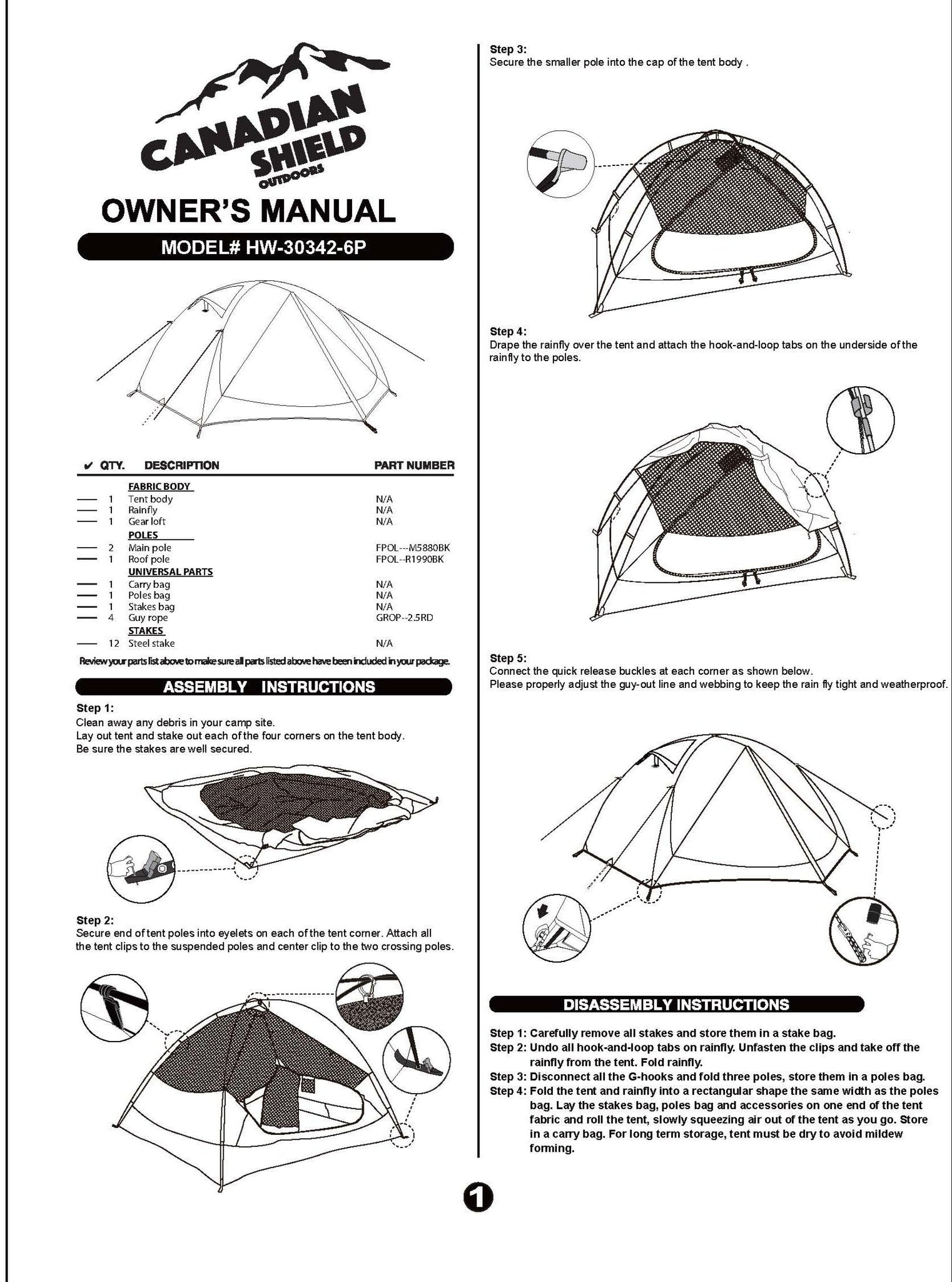 Introducing the Canadian Shield Outdoors 6 Person Tent Model BDO-C13 - the perfect choice for your next camping trip. This CS Outdoor tent offers enough room for you to enjoy your outing, with a full-fly design that keeps your adventure going even in bad weather, and a free-standing fiberglass pole design that is easy to set up. It is perfect for families or groups seeking a comfortable and reliable shelter for various outdoor activities. Measuring 10' x 9' x 6' high and weighing 15 lbs, this CS Outdoor Tent is super roomy for any outdoor adventures with the family. The vent ports on the fly allow for extra ventilation on warm nights, while the 75D breathable and Canadian Compliant Fire-Retardant fabric on the tent, fly, and floor with PU1200mm coating ensure your safety and peace of mind.