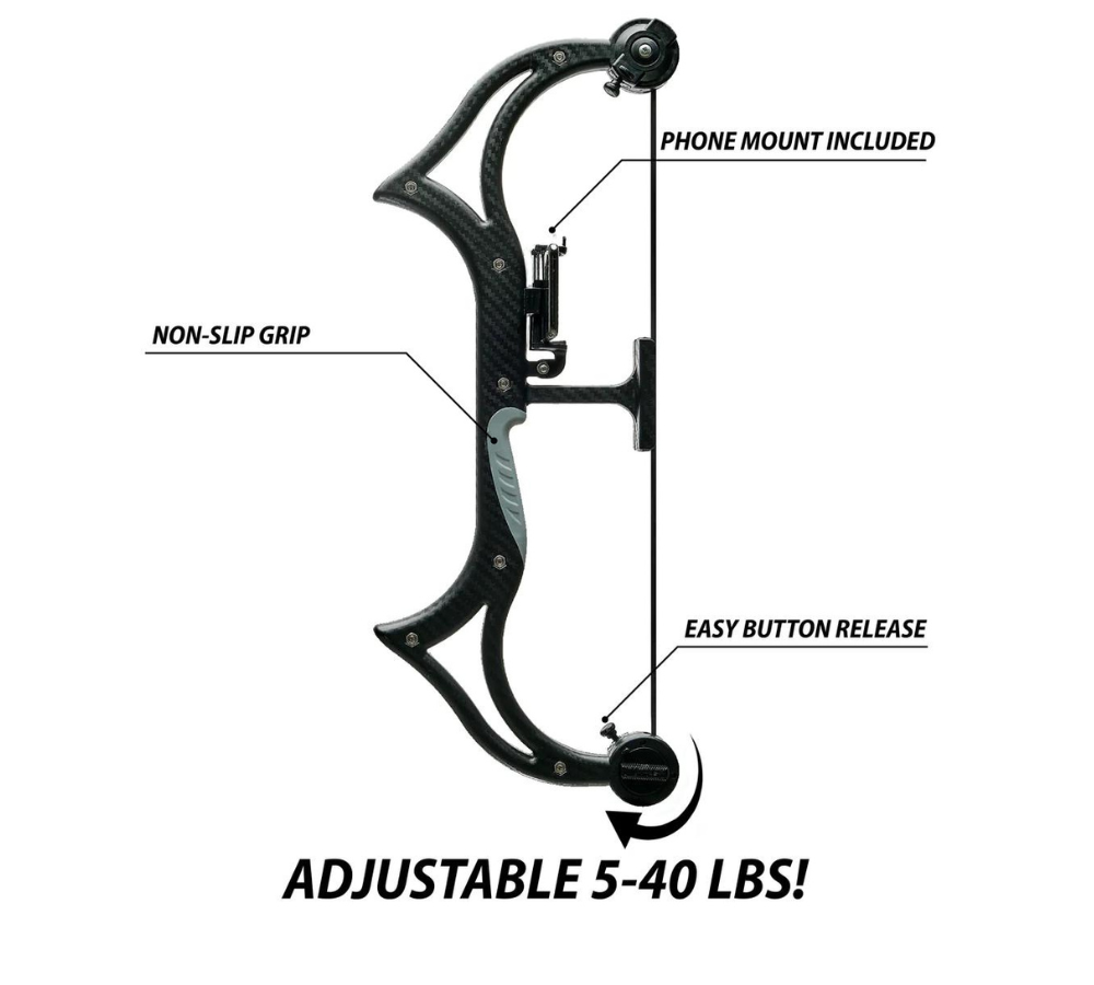 The AccuBow Nano, the world's first virtual archery practice system designed for all ages, offers the ultimate training aid for beginners. With a 100% high-density polycarbonate frame, dual resistance dials adjustable from 5-45 pounds, and a lightweight, compact design, it provides an easy and fun learning experience. The system features an installed phone mount for easy use with our free AccuBow app, which offers a range of realistic shooting modes for an immersive virtual archery experience. Perfect for kids, teens, and beginners, the AccuBow Nano enhances accuracy and lays a solid foundation for future archery endeavors.