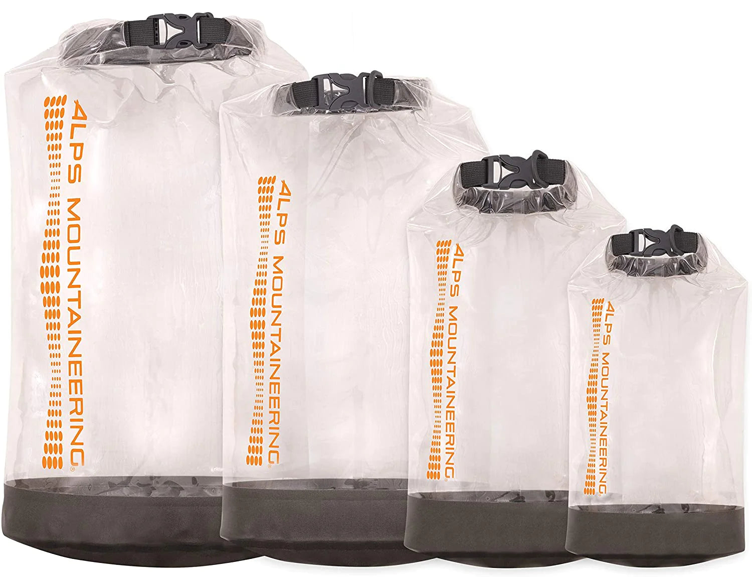 The ALPS Mountaineering Clear Passage Series offers abrasion resistant mid-weight dry bags constructed of durable waterproof TPU material, and 420D nylon TPU coated bottom, with fully welded seams. The bag's superior construction along with a secure roll-top closure locks out water and offers a tenacious water barrier in wet environments. An oval-shaped, flat bottom helps the bags stand up on their own and make them easy to fill. A D-Ring attachment point is included for additional gear lashing, stacking, or attachment to your water craft. The most adventurous can't go wrong with the Clear Passage Series.