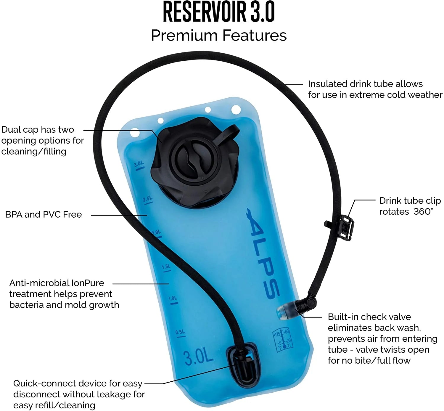 Cycling, running, hiking and climbing are all sports requiring different training, disciplines and equipment, but no matter your passion, there is one thing every athlete must have – quick and easy access to adequate amounts of water. Being without water can quickly become dangerous, and a well-designed hydration pack is the perfect solution. The array of hydration packs designs from alps mountaineering makes carrying water easy and convenient! the hydro trail 10 comes equipped with a 3l alps hydration reservoir and an insulated reservoir pocket, but it is so much more than just a hydration pack. The hydro trail 10 uses a 3d mesh suspension system, removable waist belt, and two removable sternum straps for a close, contoured fit to your body. The vest-style design features mesh shoulder straps with both stretch and zipper pockets conveniently located on both sides. An additional front zipper pocket provides ample room for other essential items.