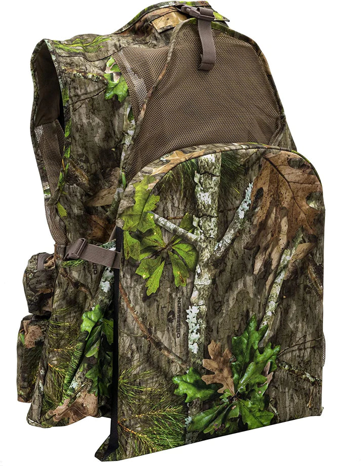 The Super Elite 4.0 is the perfect turkey vest for every hunter. Whether you take only the essentials or prefer to have an arsenal of gear at your disposal, the Super Elite 4.0 turkey vest is sure to fit every turkey hunter's specific needs. The Super Elite features a total of 22 pockets, including two large slate call pockets, three striker pockets, a box call pocket, two mesh diaphragm call pockets and an easy access cell phone pocket. In addition to the multitude of pockets, a removable 2.5-inch thick fold-away seat allows you to sit anywhere without carrying an extra seat. A breathable game is included for carrying gear out to the field or game back from the field. The Super Elite 4.0 is constructed using a quiet cotton liner and has breathable mesh panels throughout.