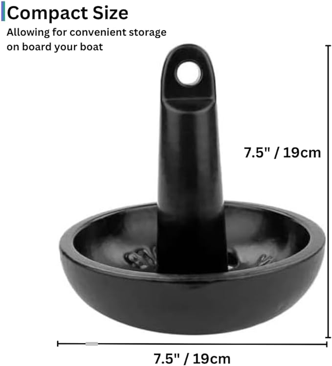 The Blue Dog Marine 10 LB Coated Mushroom Anchor is a reliable solution for securing smaller boats in soft bottoms like mud and weed. Made with high-strength cast steel and featuring a mar-resistant black vinyl coating, this anchor is designed for durability. Its compact design, integral steel eye for easy line or chain attachment, and holes for easy water drainage and increased holding power make it a practical and dependable choice for your boating adventures.