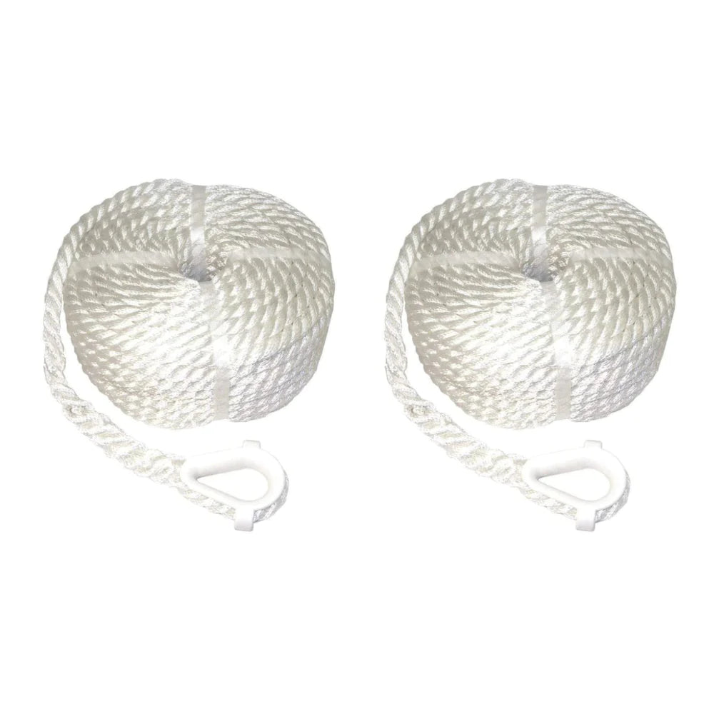 Tri-Strand Nylon Twisted Anchor Line WITH Thimble (White) [3/8"]- FSM52709
