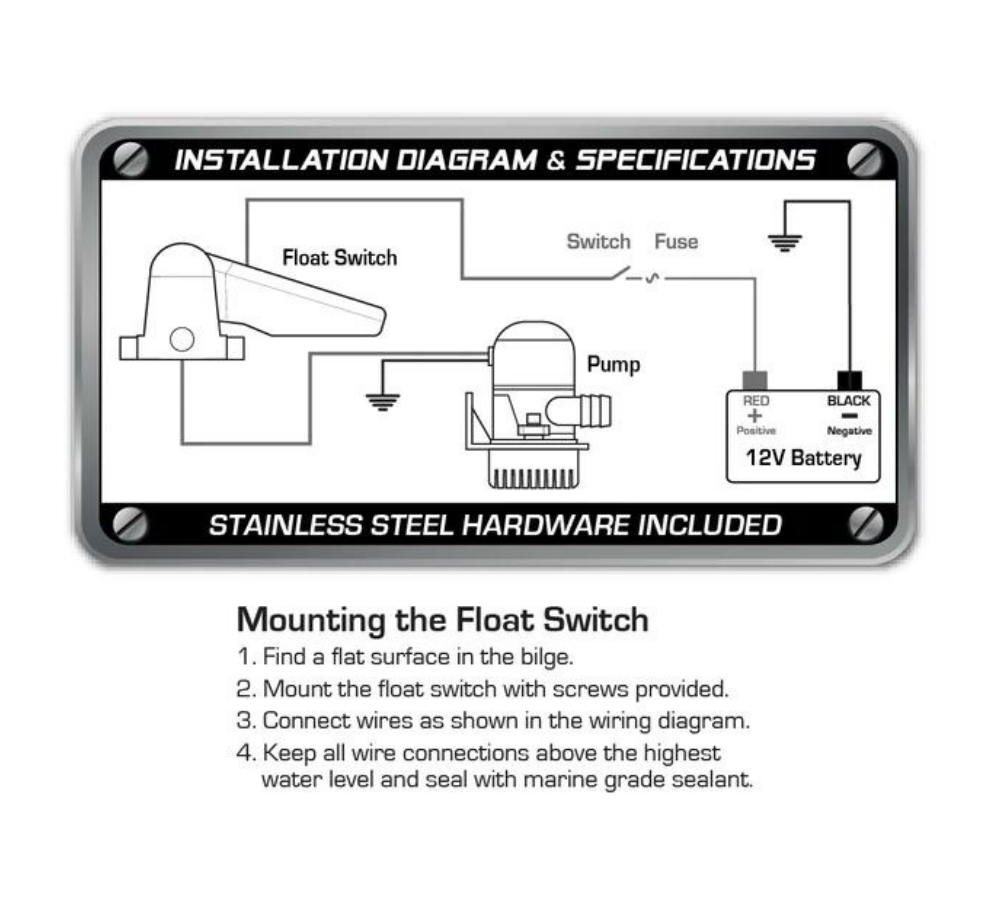 - For use with 12 volt DC bilge pumps up to 5 Amps.