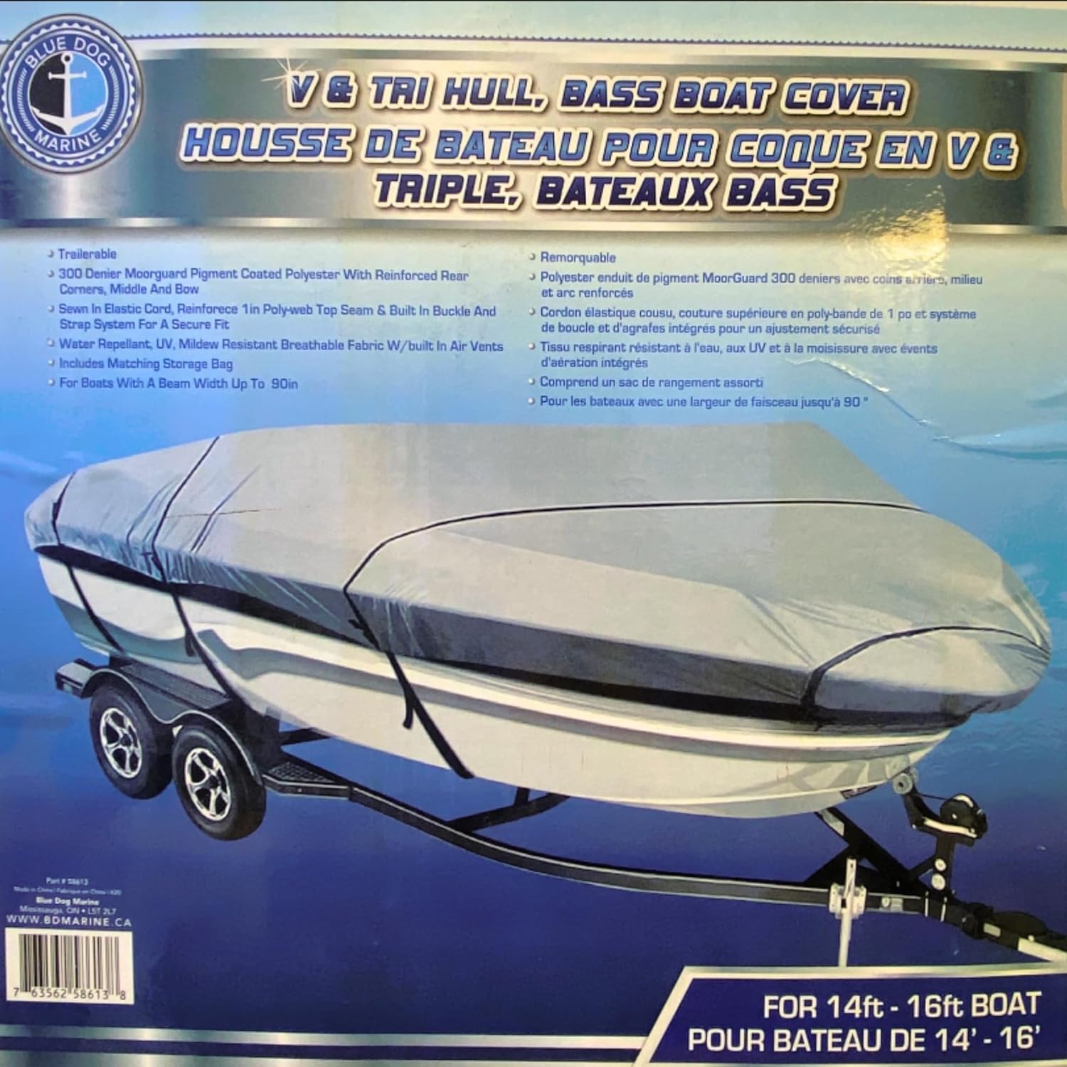 - 300 Denier MoorGuard Pigment Coated Polyester with reinforced rear corners, middle and bow