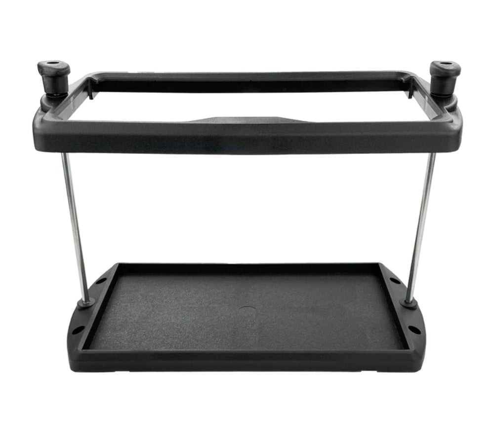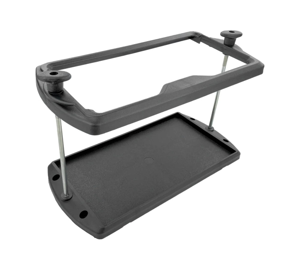 The Blue Dog Marine Screw Down Battery Tray is a reliable and easy-to-install solution to safely securing 27M style batteries and preventing injury and damage to property. The heavy-duty retaining bracket and stainless steel hardware included in the kit ensure the battery stays in place even in rough conditions, while the tray's design allows for hassle-free battery maintenance and replacement. Made from durable materials, the Blue Dog Marine Screw Down Battery Tray is a must-have for any boater looking for a secure and long-lasting solution.
