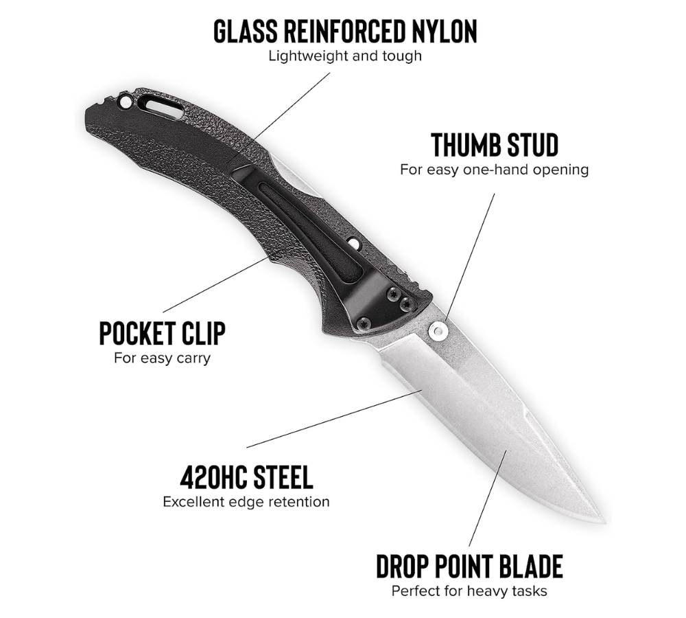 The sleek, lightweight Bantam BLW pocket knife was designed to meet any personality and priced to meet every wallet size. From the blade's tip to the wide sloping edge, these knives are perfect for outdoor tasks or everyday carry. Lightweight, safe and affordable, the Bantams feature a stylish handle with a textured surface for added grip. Features such as thumb studs on both sides of the blade and a mid-lock back location allow for easy one-hand opening and smooth closing. The contoured handle makes this knife easy and safe to use in the woods or for daily tasks. Features a stainless steel pocket clip that can be removed for pocket carry. Length 4 3/8" closed. Made in the USA of USA and imported parts.