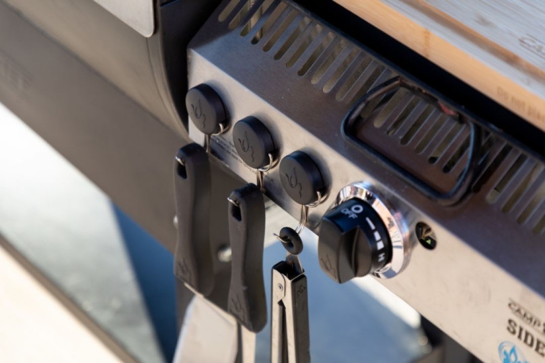 Having everything in one place just makes life easier. Same goes for grilling. Gone are the days of "Where's my spatula?"...."Can someone bring me a basting brush?" Keep your tools right where you need them with our Camp Chef branded magnetic hooks. Hook them to your side shelf or your hopper for easy access whenever you need a helping hand.
