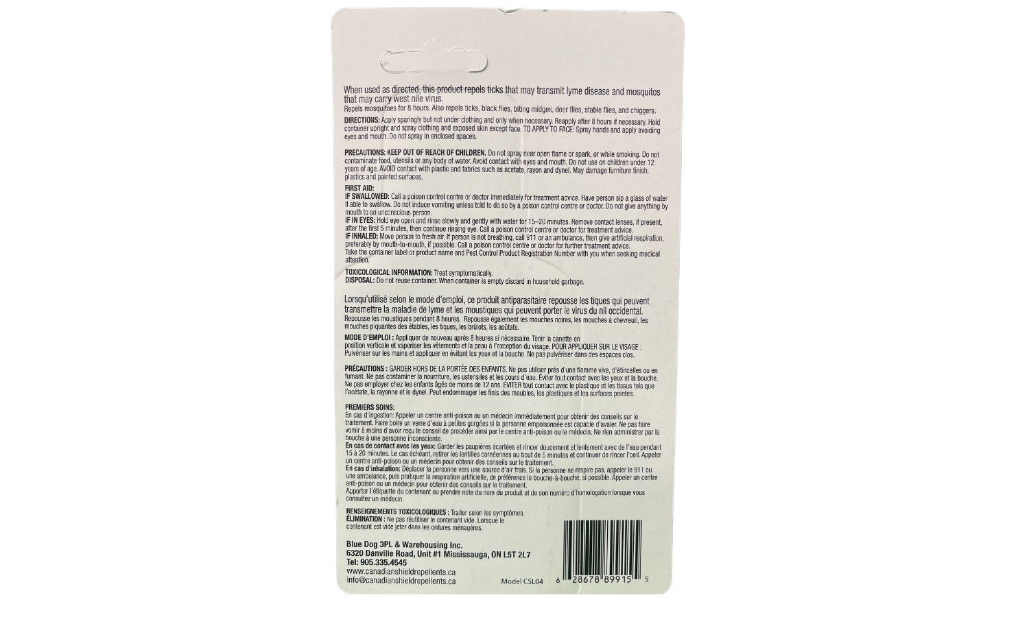 Canadian Shield CLIP STRIP (12 pc.) 100ML DEET Liquid - CSL04CS