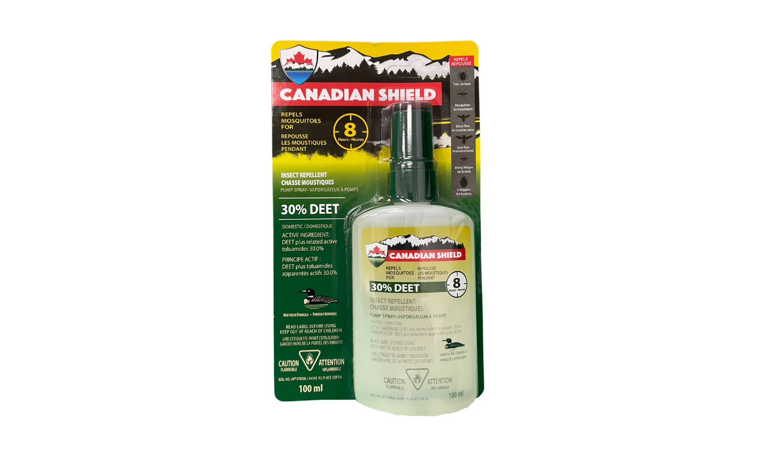 Canadian Shield Mosquito & Insect Repellent | Up to 8 Hours of Protection | Formulated for Camping, Hunting, Fishing, Family Fun, and more! | 30% DEET | Liquid Pump 100ml CLIP STRIP (12 pc.)- CSL04CS