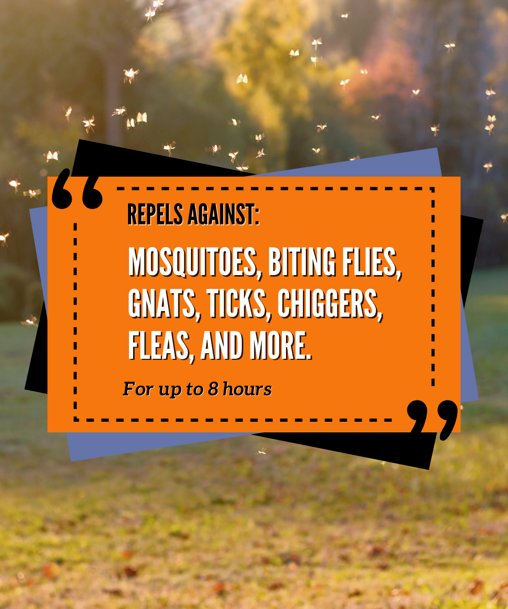 - Repels mosquitoes, black flies, stable flies, chiggers, deer flies, and more
