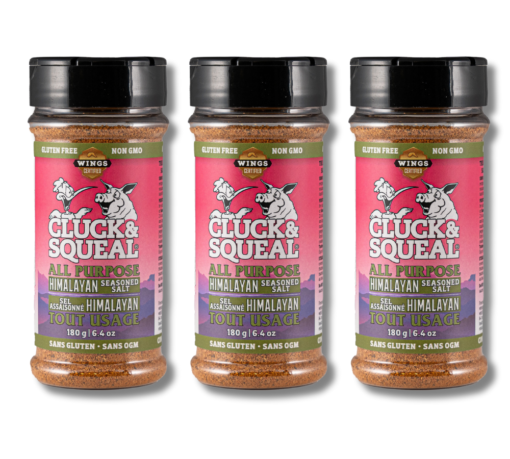 - Spicy Flavor: The Cluck & Squeal pure chili pepper blend called "Tasty Hot" can be combined with the All Purpose Himalayan Seasoned Salt for a spicy and flavorful heat.