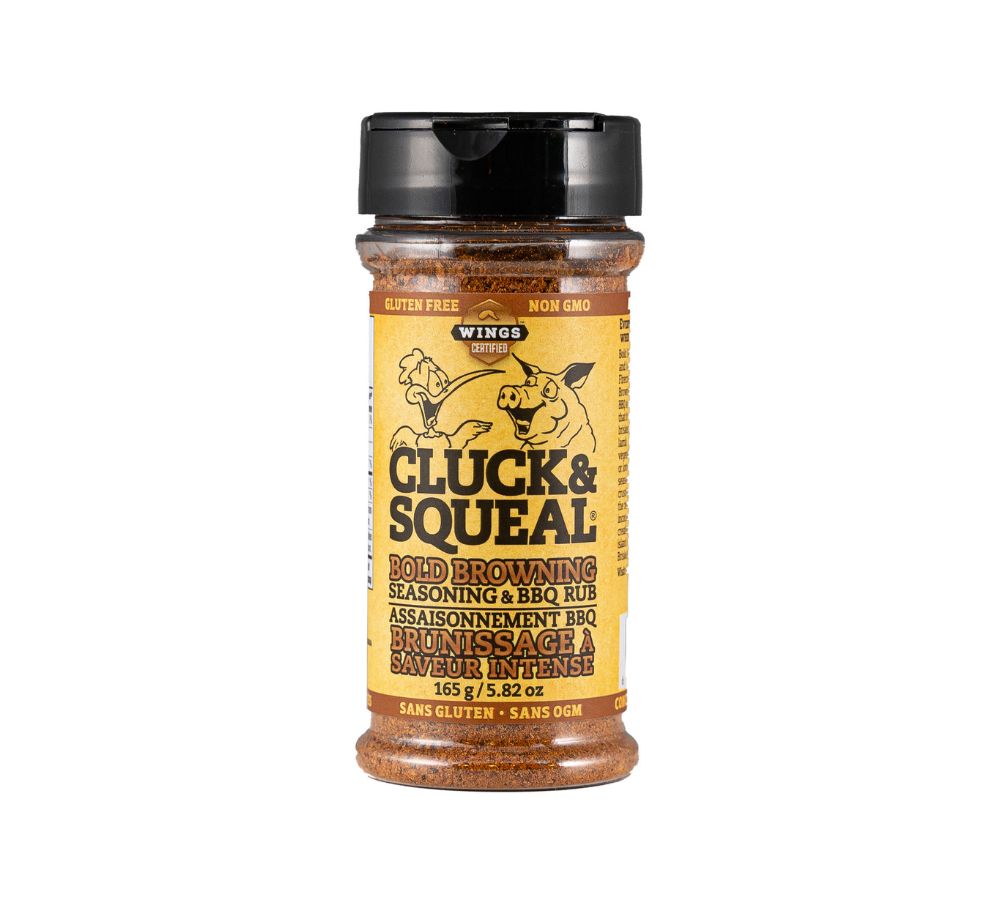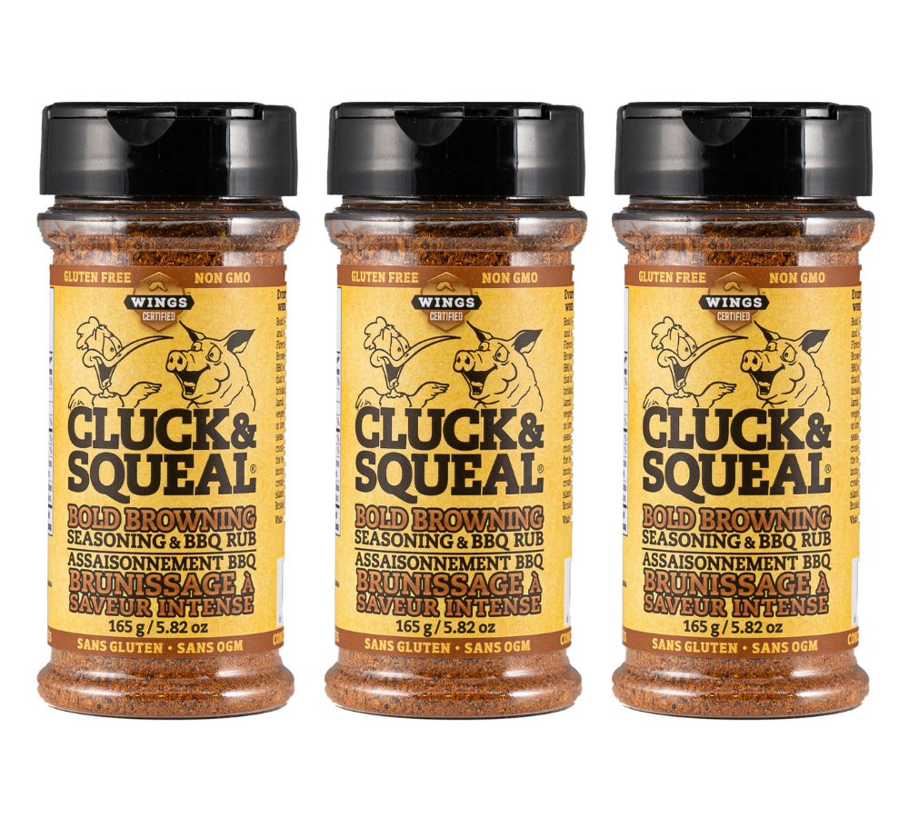 The Cluck & Squeal pure chili pepper blend called "Tasty Hot" can be combined with the Original Bold Browning Seasoning & BBQ Rub for an extra level of spicy flavor.