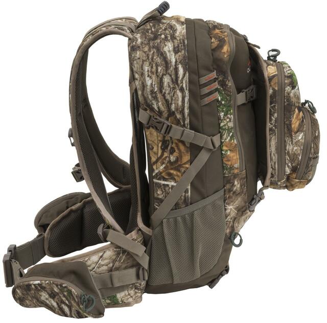 The Crossfire also features a vented back to keep hunters cool while they're conquering rugged terrain. It features a lightweight X frame, that when combined with the padded shoulders straps and padded waist belt, makes for a very comfortable haul. There are large zippered pockets on the waist belt and two mesh pockets to keep water bottles easily accessible. The Crossfire pack is offered in brushed Realtree Xtra and Mossy Oak Country to keep hunters quiet and hidden in the woods.