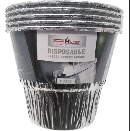 Keep it clean! Easily dispose of grease from your Camp Chef pellet grill with the Disposable Grease Bucket Aluminum Liners. Purchase includes 5 liners.