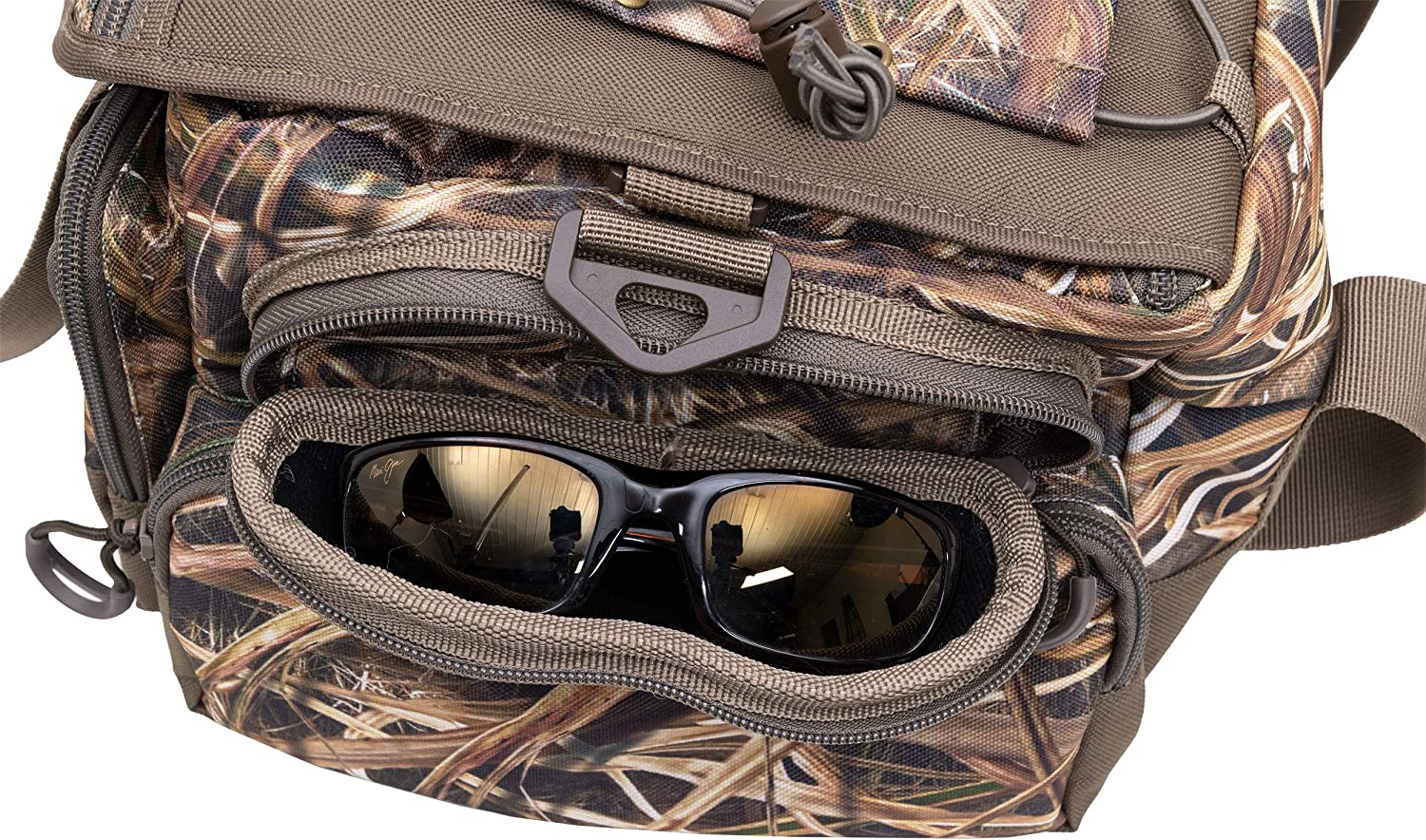 The waterproof sealed membrane on the main compartment s that the gear you bring to the field will stay dry while you’re hunting. The bag is constructed of non-absorbing closed cell foam, which ensures that it won’t soak up any water. The Floating Deluxe Blind Bag has been designed with an array of convenient features, such as a removable interior dividers, a clear valuables pocket for your cell phone and other accessories, and a hard sunglasses case. The bag also includes a multitude of pockets to give you countless organization options, as well as a thermos & jacket sleeve on the top. The Floating Deluxe Blind Bag also features a padded carry handle and shoulder strap to make transporting your gear stress-free. Available in two sizes: Standard (12"x9"x8") and Large (14"x11"x9").