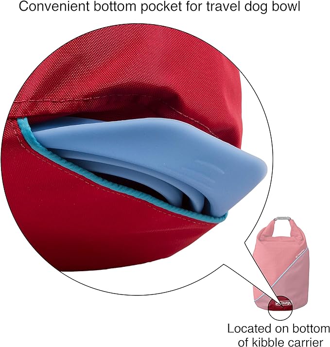 Extra storage pockets: A zippered side pocket offers space for treats, keys, doggie bags, or extra cash, while a zippered bottom opening fits one of our Kurgo Collaps-a-Bowls (sold separately).