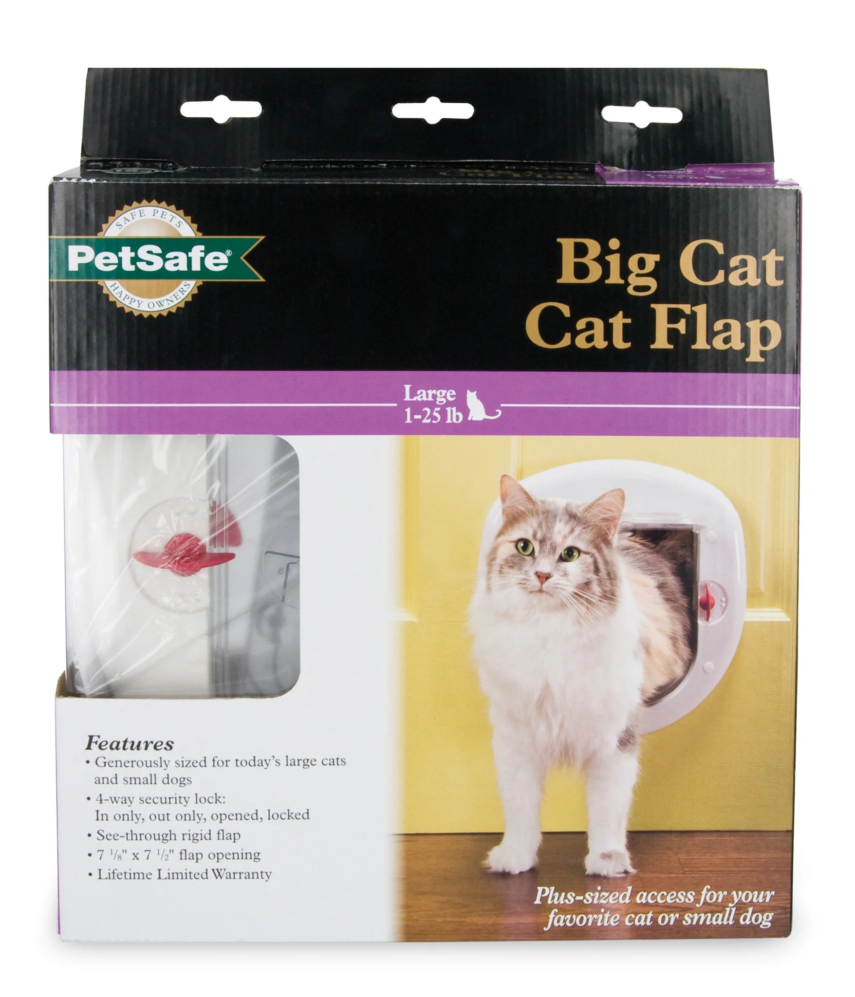 While you’re at work, you even want your large cat to have the freedom to explore the outdoors as she needs. And even when you’re at home, you want her to enjoy the same independence when she wants to play. With the improved Big Cat Door, she can! Generously sized for large cats, the updated design has an improved, stronger flap with added weather stripping for better weather resistance. The strengthened 4-Way locks give you 4 options to control your cat’s access in and out of your home: opened, locked, in-only (cat can come in but not go out) and out-only (cat can go out but not come in).