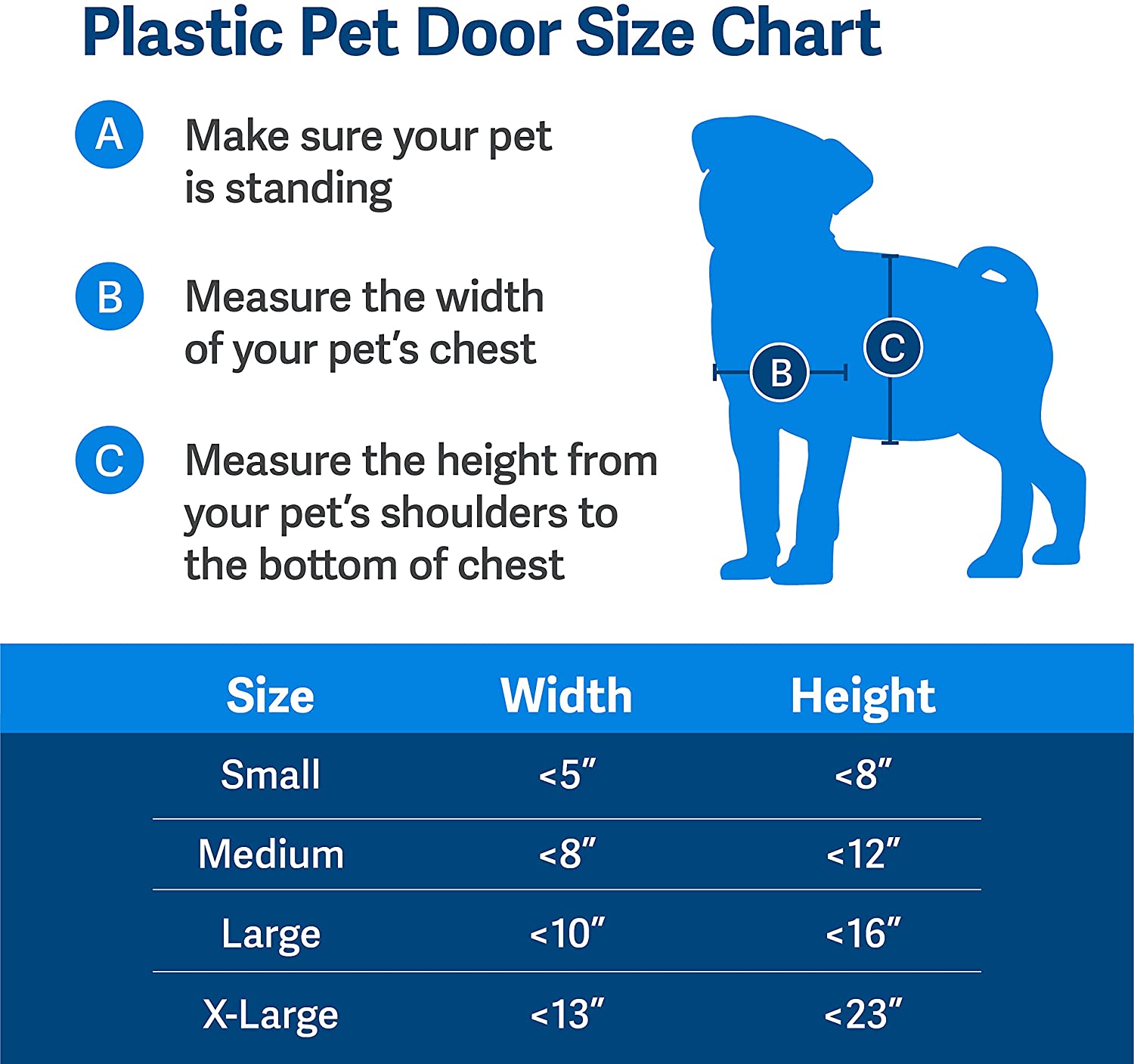 This durable plastic pet door gives you and your furry pal the freedom you both deserve. The soft, flexible transparent panels are safe and easy for your dog to push open so he can let himself out - and back in. The panels can also keep drafts and insects out of your home.