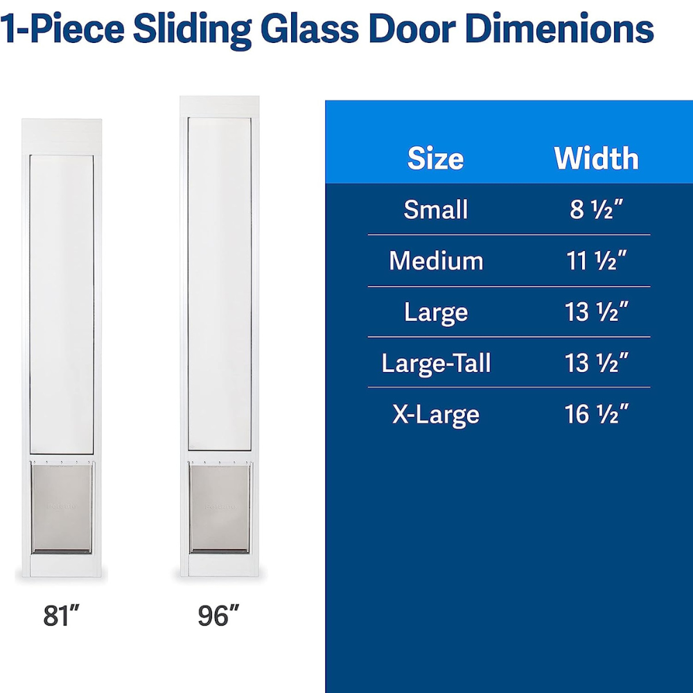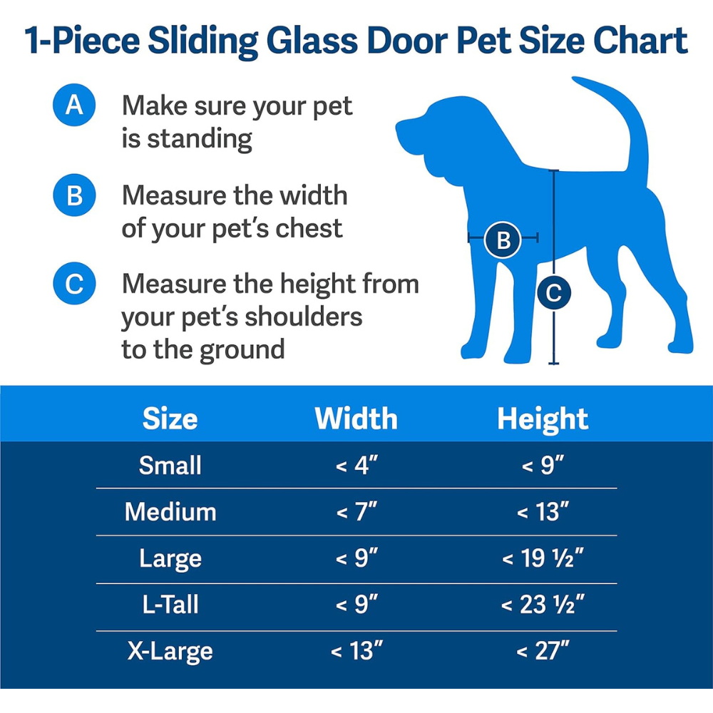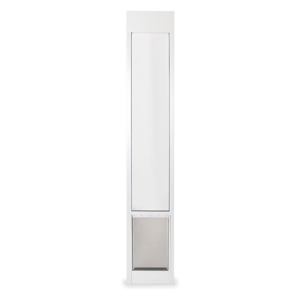 The pet door that lets your best friend explore! The PetSafe Freedom Patio Panel Pet Door lets your dog or cat play outside or take a potty break on their schedule. Perfect for apartments and rental homes, this pet door quickly installs in your existing sliding door tracks without cutting into a door or wall. The patio panel is available in 2 adjustable sizes to fit next to your human sliding glass door. If you and your furry friend ever move, you can easily remove the patio panel in one piece and take it with you. To lock your human door once the patio panel is installed, use the included latch kit. To choose when your pet comes and goes, use the closing panel to lock their pet door. This door is built with weather resistant aluminum, shatter resistant tempered glass and has a magnetic closure to help keep cold drafts and hot weather out. Your pet deserves the best. Trust PetSafe to help keep your pet healthy, safe and happy.