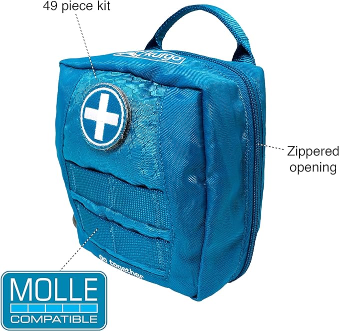 Introducing a 49-piece travel first aid kit tailored for outings with your furry companion. This comprehensive kit is not only compatible with RSG harnesses and utility belts but also integrates seamlessly with MOLLE systems. This means you can attach it directly to your MOLLE-compatible harness, enhancing accessibility during your adventures. Additionally, it's designed with portability in mind, featuring a compact size and water-resistant packaging, making it ideal for travel.