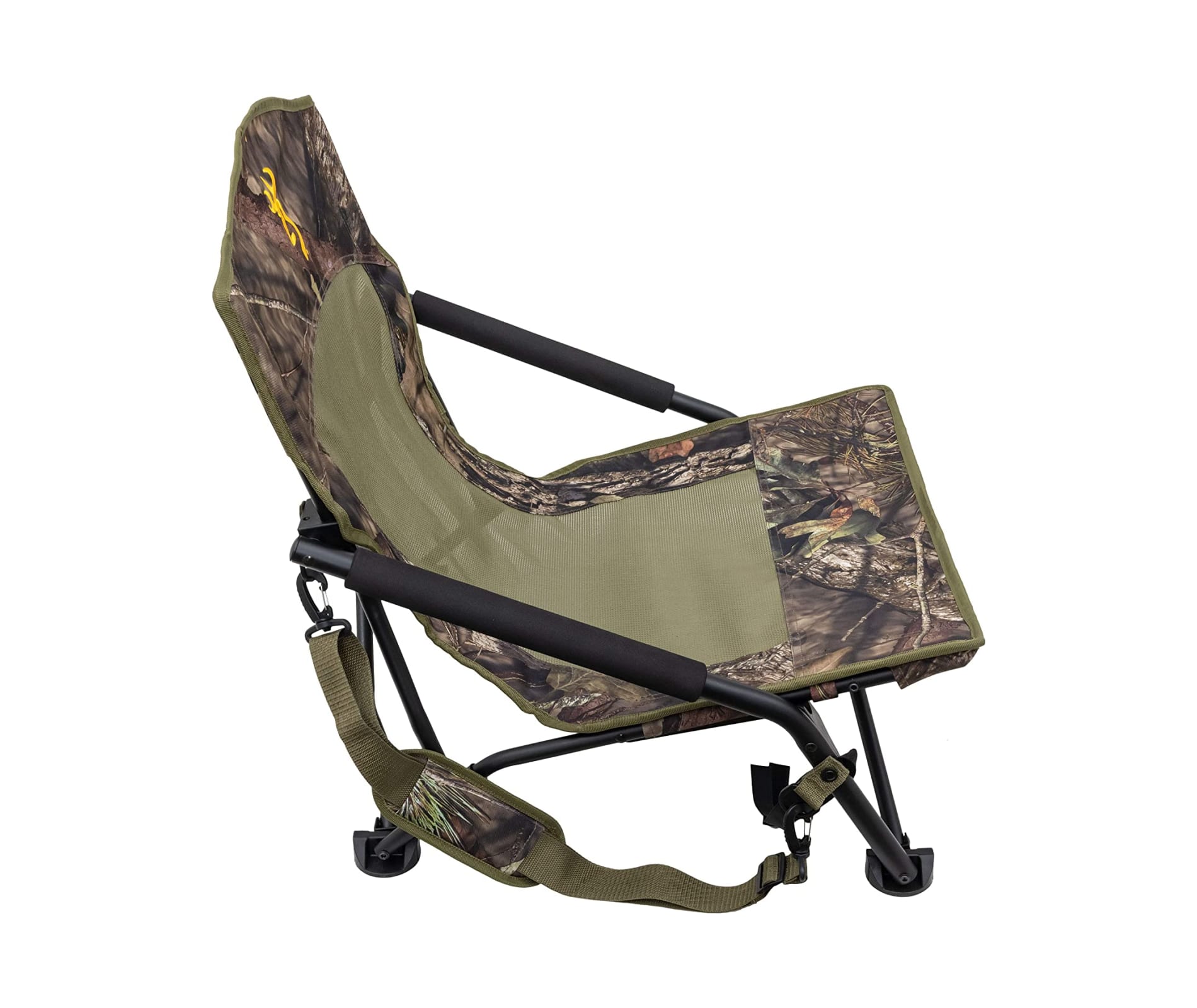 The ultimate chair every turkey and predator hunter has been looking for is here -- the Strutter! After years of tremendous success with our ALPS OutdoorZ Turkey Chair, the one remaining feature hunters were asking us to try to solve was the "fold-up size." Our designers and engineers were able to develop this new Strutter model, which now will fold-up and fit into a carry bag. None of the original Turkey Chair features were compromised, like sitting low to the ground, being strong & durable, and being extremely comfortable. We also added four rotating feet to the bottoms of the chair legs, to make sure it will always sit firm and solid, even on crooked terrain. When you're in the woods for hours on end, it's nice to be able to lean back and relax a little. When you're in a hurry and don't have time to put the chair back into the bag, don't fear... there's an included padded carry strap so you can just throw the chair over your shoulder and be on your way.