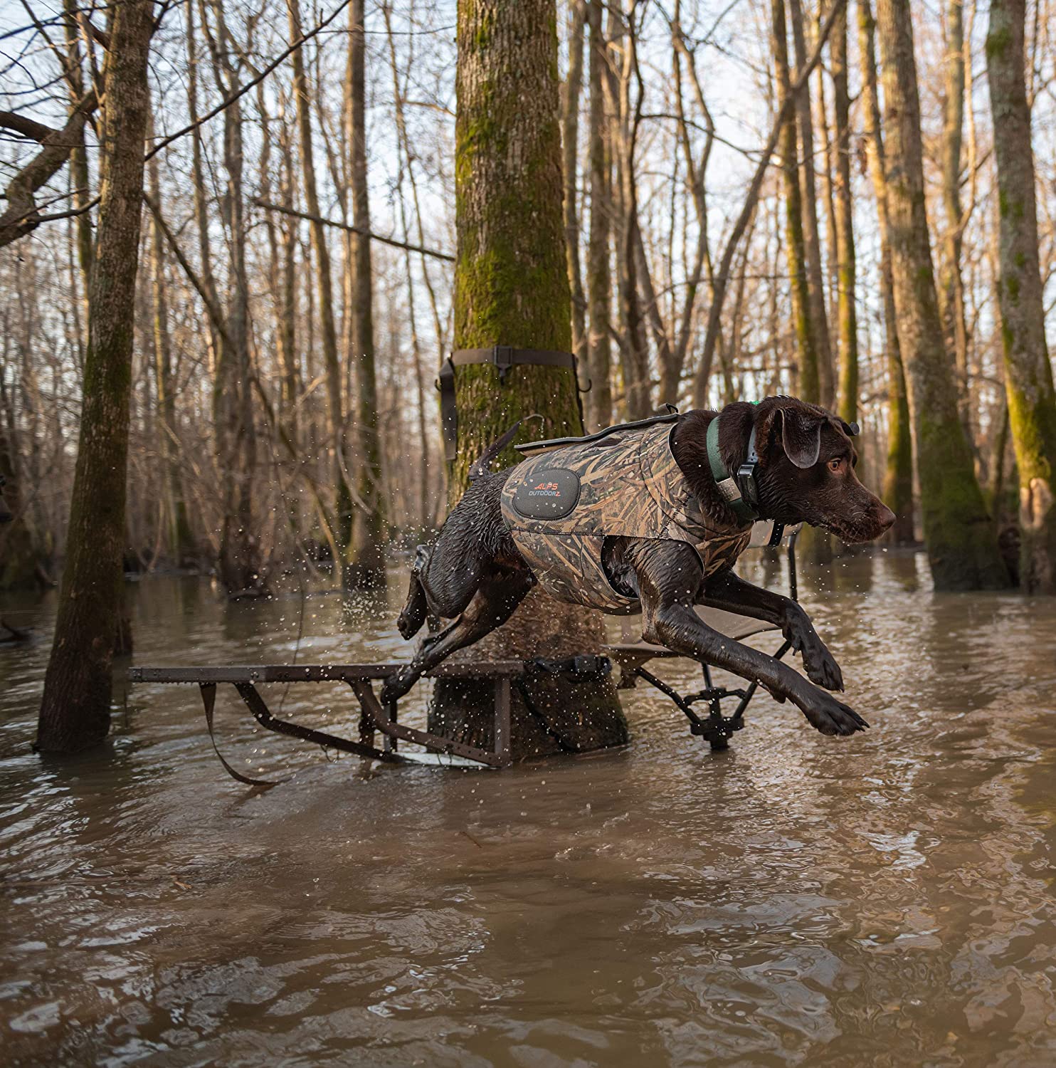 Our Topflight Dog Vest is constructed of a 5mm thick neoprene to keep your best friend warm and safe while hunting. The vest features a dog leash clip for when your hunting partner needs to be leashed, as well as flotation pads to provide extra buoyancy when swimming. The built-in handles allow you to easily assist the dog out of the water, if needed. Vest has a contoured neck design, for a better fit. Fabric makes it easy to trim so you’re able to get an exact fit for your dog.