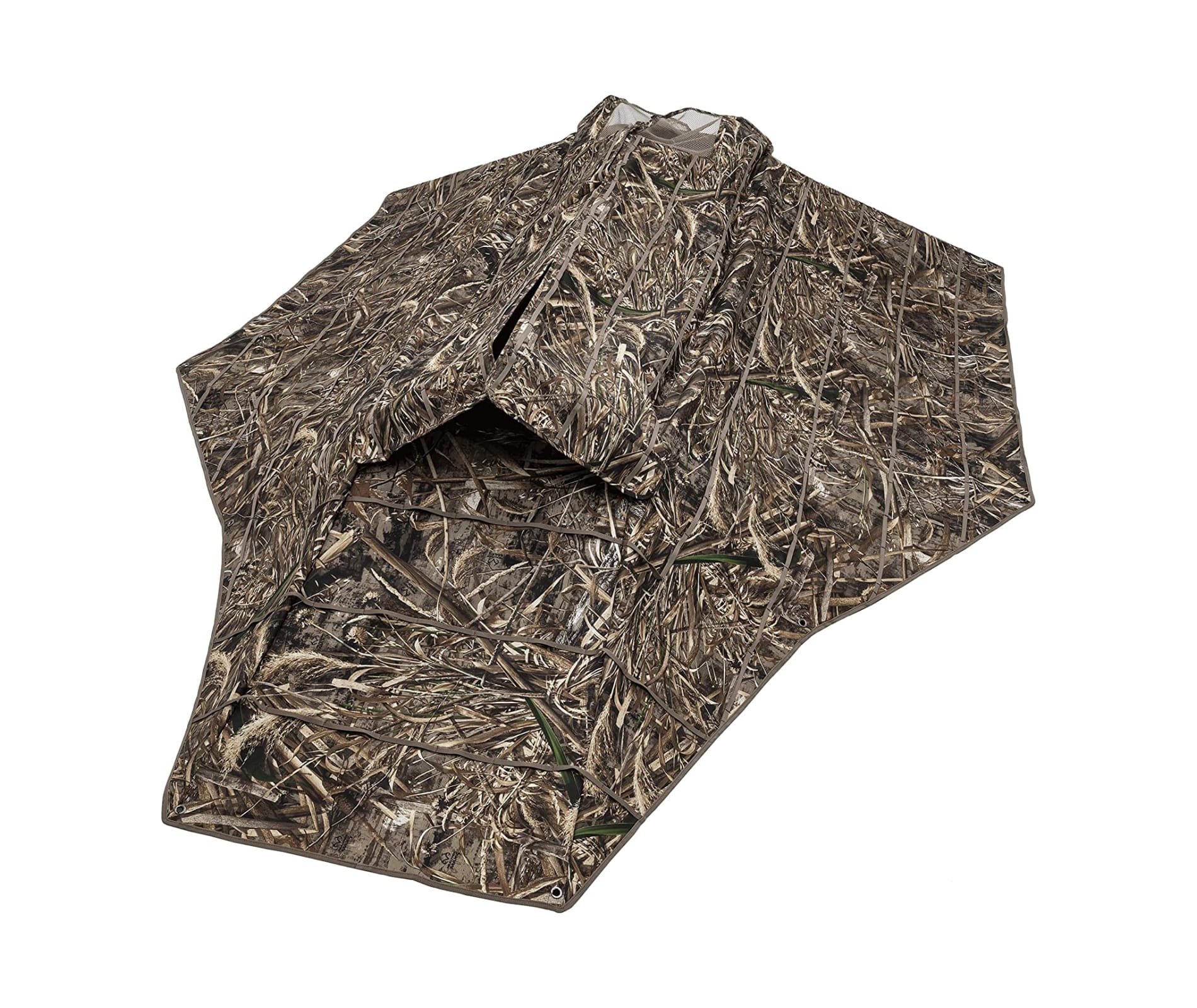 The most comfortable & easiest layout blind to set-up available on the market today. Period. The Zero Gravity Layout Blind requires no assembly, and boasts an array of features that make it durable, comfortable, portable, sturdy, and reliable. Utilizing a patented zero-gravity chair design that keeps you off of the ground while also maintaining a low profile, you'll never go back to your old layout blind again. The fabric flares out on all sides to help make concealment easier, and allows for storage of bags or other accessories in the blind. Backpack carry straps make transporting the blind a breeze. There isn't a floor in the blind, which makes clean up quick and easy. The blind also includes two side gear pockets for extra items, brush loops throughout for added concealment, heavy duty threaded stakes for frozen terrain, and a padded head rest for maximum comfort. The cockpit has an opening dimension of 24" by 56" and features two zippered flag ports next to the doors.